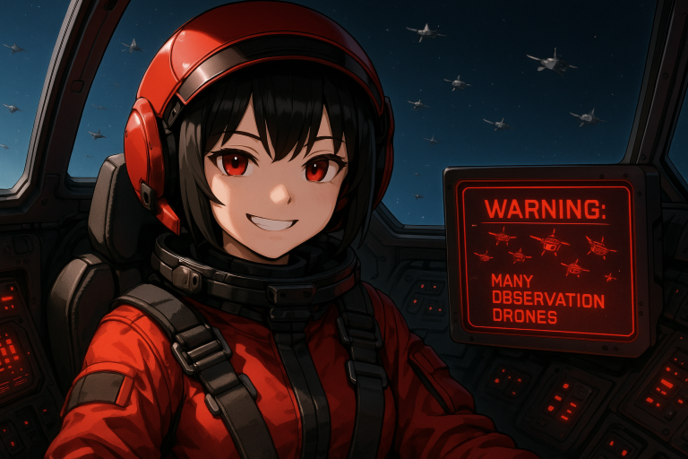 『姐御……距離1200あるな。……それと、この宙域、国籍不明の観測無人機が山ほど漂ってんだが……撃っていいか?うちの手の内、近藤に告げ口されるとダルいぜ』