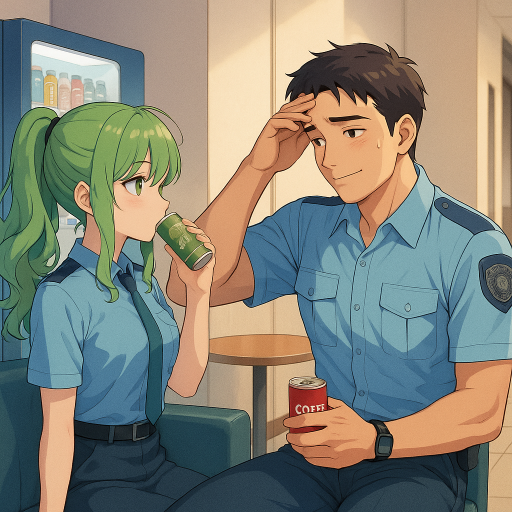 誠は隣に座るカウラの緑の髪を横目に見ながら、ブラックコーヒーをそっと口に運ぶ。缶の縁から立ち上る湯気が、微かに顔に当たる。