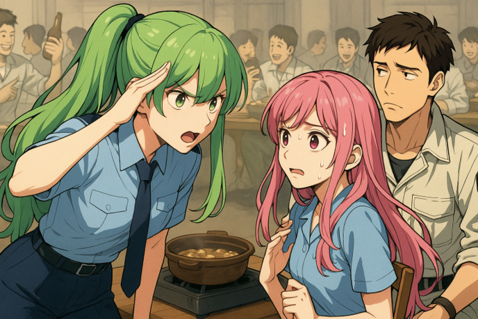 軍医を探しに行っていたはずのランですら、ランの常識の範囲にあるラブシーンしか想像できないカウラが相手と会って。いつの間にか嵯峨のいる上座の鍋を占拠し、誠達を一瞥することもなく、箸を鍋に突っ込んでクエの身をさらっている。