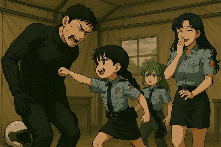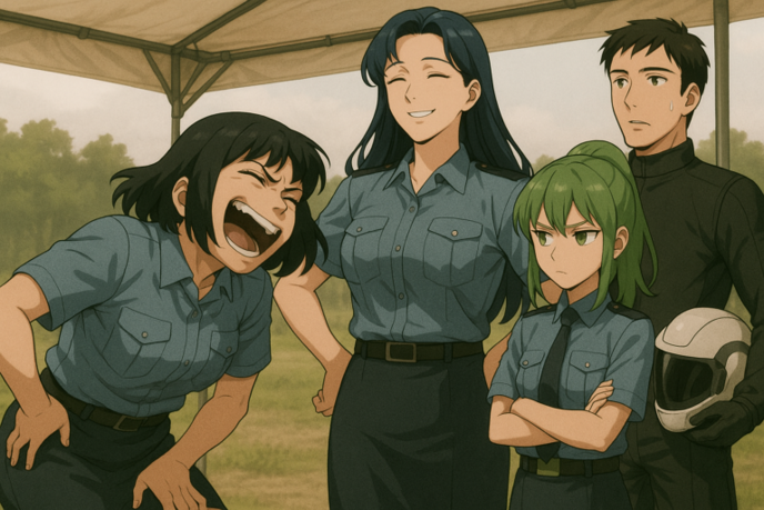 機体を降りた誠の前でさんざんかなめにプロレス技をかけられていたアメリアが、屈伸をしながらカウラの顔を見上げる。アメリアのランを『ちんちくりん』と表現するのがツボに入ったらしく、かなめは思わず大爆笑を始めた。