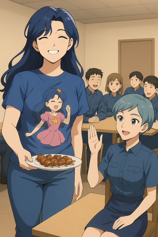 アメリアは自分のテーブルの前に置かれた砂肝の皿を全員に見せる。パーラが手を挙げたのでアメリアは立ち上がってパーラのところにその皿を運んだ。