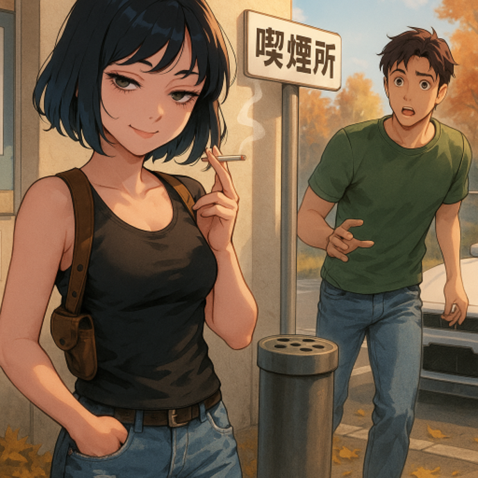 寮の入り口脇、喫煙所でタバコをくゆらせていたのはかなめだった。
