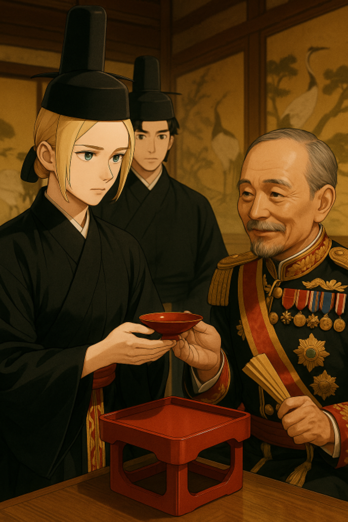 その様子を見届けた下官は、三宝に置かれた酒器をそっと持ち上げ、足音も立てずに襖の向こうへと姿を消した。