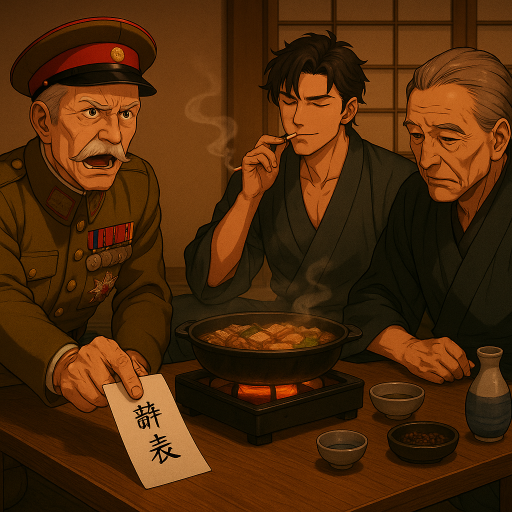 嵯峨に見切りをつけた醍醐は懐から書簡を取り出した。表には『辞表』と書かれているのを見ても嵯峨は黙って白滝を取り皿に運んでいた。