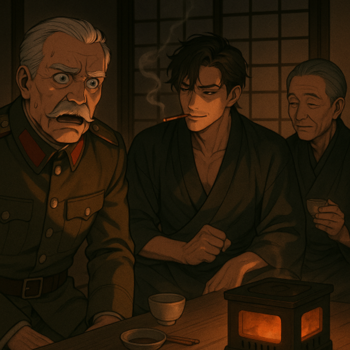 静かにそう言うと西園寺義基は嵯峨が置いた一升瓶から直接自分の猪口に酒を注ごうとする。さすがにこれには無理があり、ちゃぶ台にこぼれた安酒を思わず顔を近づけてこぼれた酒をすすった。思わず嵯峨の表情がほころんだ。
