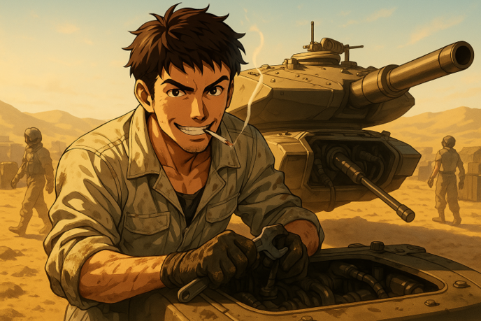 砂埃が舞う格納ヤードの片隅で、島田正人准尉は一台の飛行戦車に半身を突っ込んでいた。
