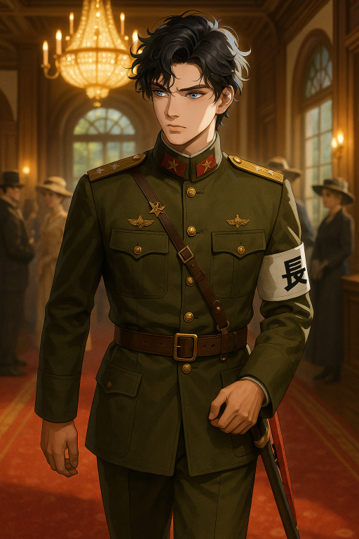 甲武陸軍には『特務大佐』という階級が存在しない。そのため、嵯峨は形式上、二階級上の「少将」の制服を着用するように定められていた……実際には、義娘であるかえでに無理やりその制服を着せられ、このラウンジに現れたのだ。彼の腕に巻かれた『憲兵』と赤文字で染め抜かれた白い腕章が、この場にいた誰の背筋も冷たくさせた。