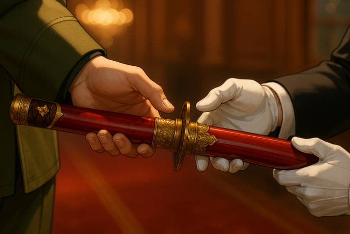彼は朱塗りの軍刀を無言でホテルマンに預けると、静かにラウンジを歩き始める。その視線の先には、英国式の庭園を望む奥の個室があった。