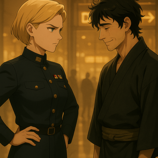 海軍佐官の制服に身を包み、渡辺リン大尉を従えたかえでは、先日の殿上会で正式に四大公家・嵯峨家の家督を継いだばかり。その目鼻立ちのはっきりした美貌もあって、どう見ても人目を引く存在だった。そんな自分と、あの格好の義父が並んでいる……それがたまらなく恥ずかしかった。