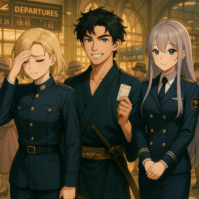 ここは鏡都四条畷宇宙港。亜空間シャトルが発着し、甲武でも屈指の賑わいを見せるこの港において、嵯峨の姿は周囲から完全に浮いていた。洒落た服に身を包んだ東和のビジネスマンや、『大正ロマンの国』の響きに惹かれて訪れた観光客たちが行き交う中、明らかに異物だった。