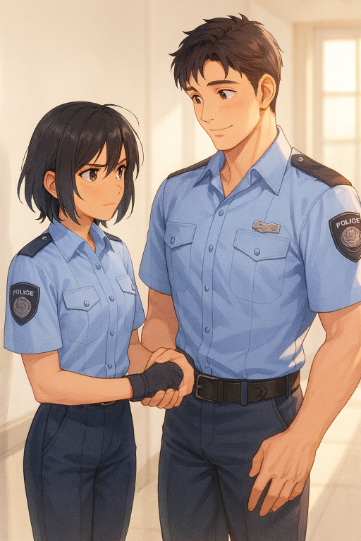 アンはTシャツをぽんと投げ、ぎこちない動きで敬礼する。固くなったその姿に、誠は苦笑交じりに応じた。