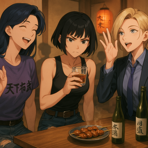 ランと茜に責められて嵯峨は肩をすぼめて日本酒を飲んだ。