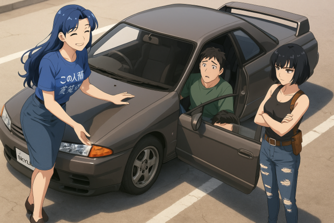 カウラの『スカイラインGTR』の車内。後部座席の誠を挟んで、助手席のアメリアに向かって、かなめがそうからかう。