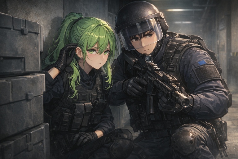 東和陸軍の室内戦演習場のバリケードの影に二人の人影があった。第一小隊長のカウラ・ベルガー大尉が苦々し気にそうつぶやくのが第一小隊のシュツルム・パンツァー三番機担当である部下の神前誠曹長にも聞こえた。室内とは言え暖房などは当然ない訓練場の空気は冷たく、そして風通しも悪いのでよどんでいた。