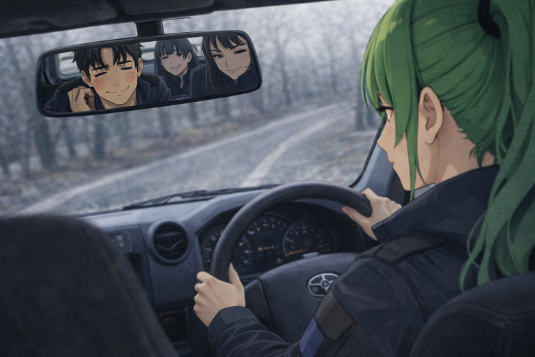 場はその言葉で和むが、カウラはさらに追い打ちをかけようとバックミラー越しにかなめを見つめた。バックミラーに映る誠の顔が、からかいではなく『気遣い』だった。カウラは目を逸らした。
