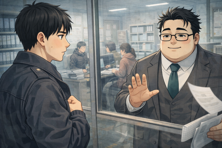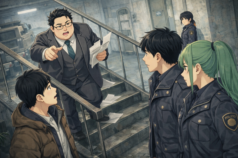 本庁舎に向かう通路の床は冬の冷気で薄く冷え、換気口の風が書類の端をめくった。