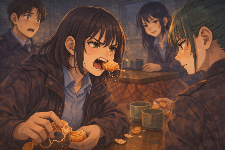 いつも叔父に対して挑発的な口調になるかなめは言葉を発した後、誠は思わずかなめを見た。誠の視線に気づいたかなめは気まずそうに剥いたみかんを口に放り込んだ。
