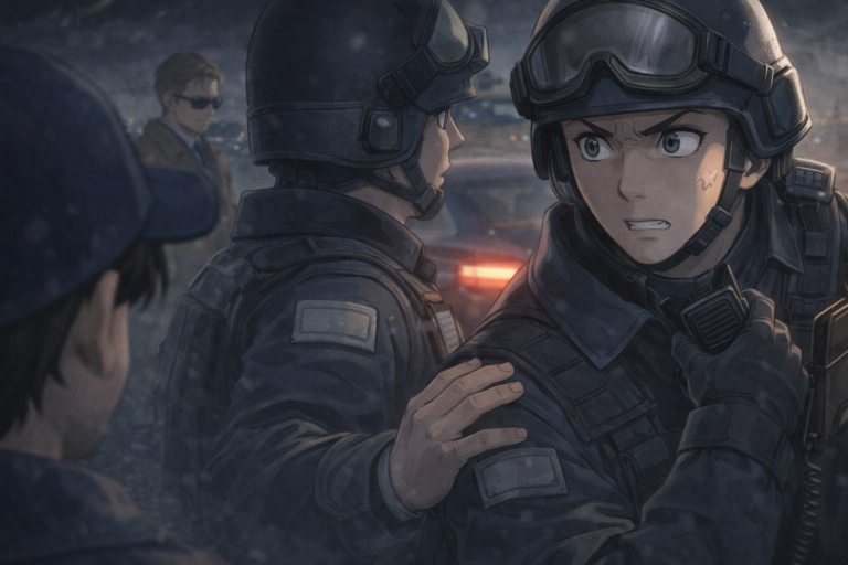 警官の表情が凍りついた。男はさらに質問をしようと思うが、上司からの指示『目立つことはするな』と言う一言を思い出した。