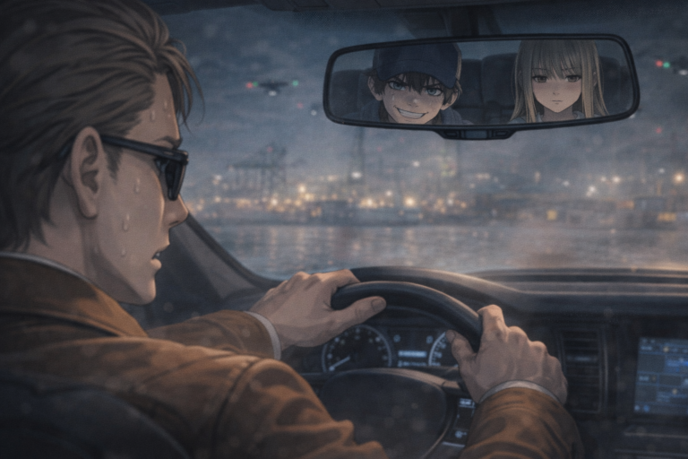 運転席でハンドルを握る男の額に冷や汗が流れた。