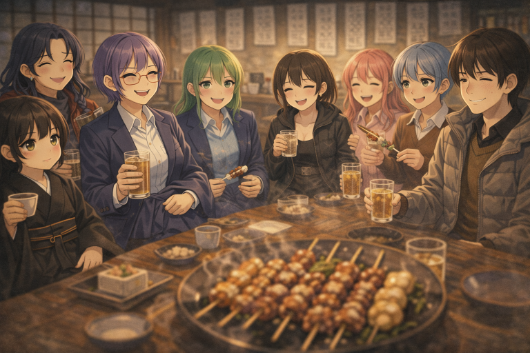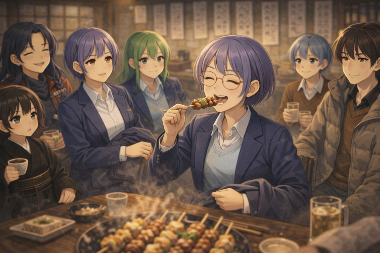 カウラの助言にうなずくとエルマはねぎまを手に取った。炭の上で脂がぱち、と跳ね、白葱に艶が走る。噛んだ途端、甘みがタレと混ざって舌にからむ。そしてそのまま口に運ぶと途端にうれしそうな顔になる。
