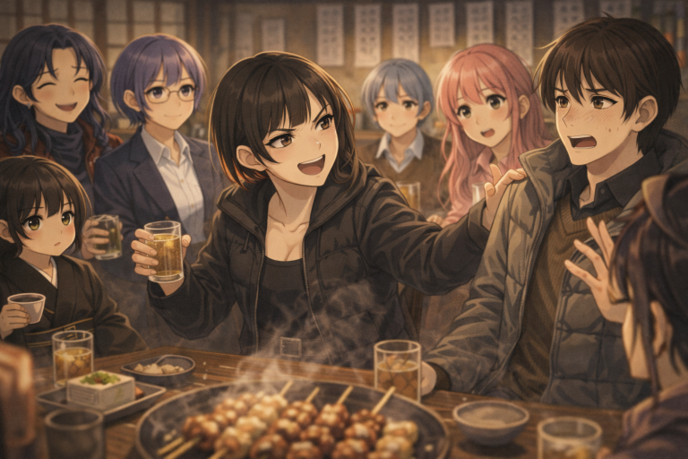 かなめの言葉にランはうなずきながらお猪口で日本酒を飲んでいた。それを心配そうにエルマが見つめていた。