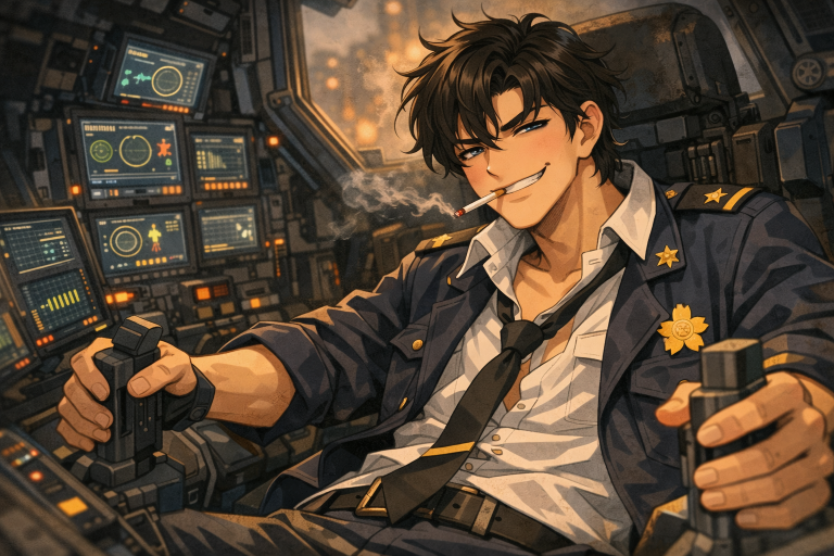 そして嵯峨は決してコックピット内ではタバコを手放すことはしない。本人曰く『おれはコックピット内でタバコが切れると死ぬの』と言うことだったが、究極の『駄目人間』の嵯峨ならばそのくらいのことはあり得るのではないかと思わせるダレっぷりだった。