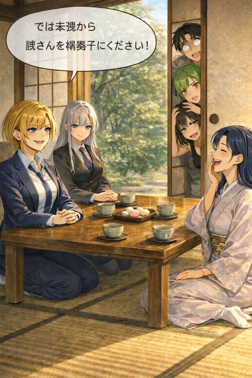 誠達は自分達の考えが甘かったことをここで悟った。かなめの母、西園寺康子はかえでの性癖も含めて薫に話をしていたらしい。そしてそれを薫も認めた上で『許婚』と言うことになっている。