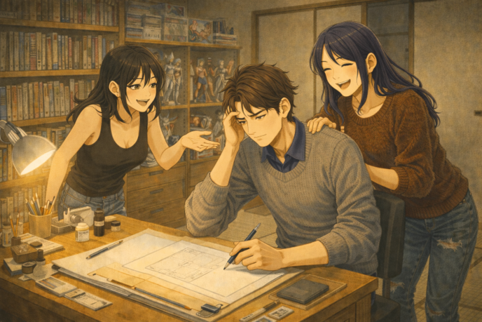 ののしりあう二人を置いて誠は頭をひねった。だが、どちらかといえば最近はアメリアの企画を絵にすることが多いこともあって自分で絵柄を決めることが減っているだけに誠の中でなかなか形になる姿が想像できずにいた。