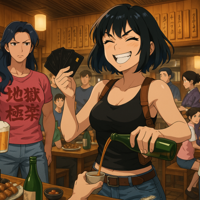 「金は下ろしてきた。ここはカード使えねえからな。アタシを誰だと思ってるんだ?こう見えても一応ブラックカードの五枚や六枚くらいは持ってるんだぜ」