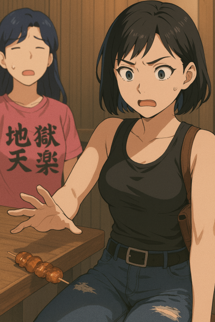 かなめは驚きのあまり、トリ皮串をぽとりと落とした。