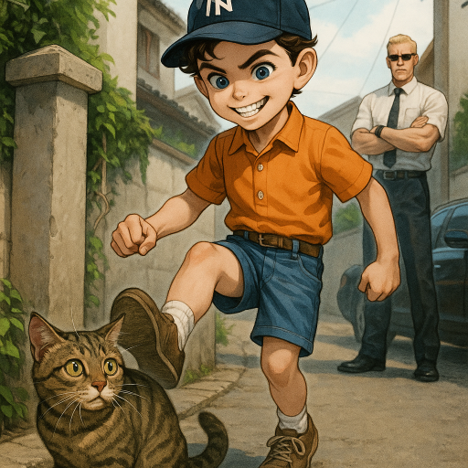 クリタは門柱にうずくまっていた猫に近づくと、足を振り上げて……やめた。