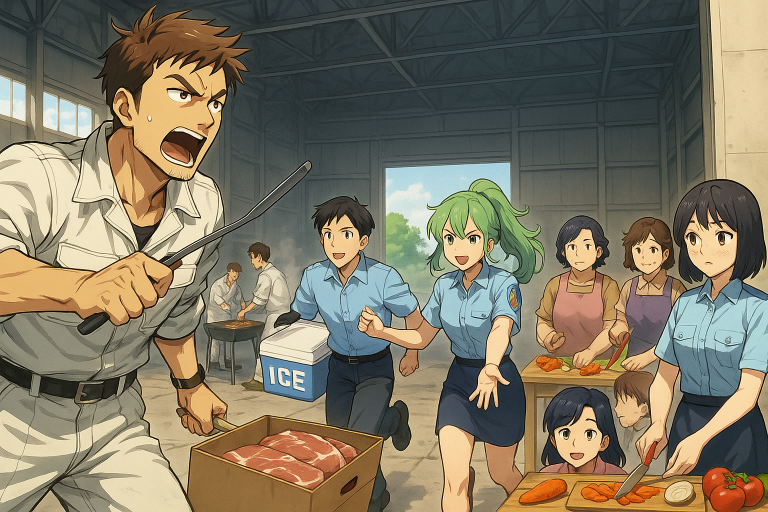 「ちょっと!ちゃんと肉は平等に分けろよ!そこ、もたもたしてないで野菜を運べ!」