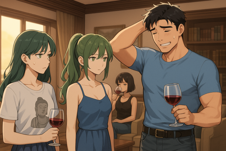 誠はカウラとかなめを見つめる。カウラは黙って固まっている。かなめはワインに目を移して誠の目を見ようとしない。