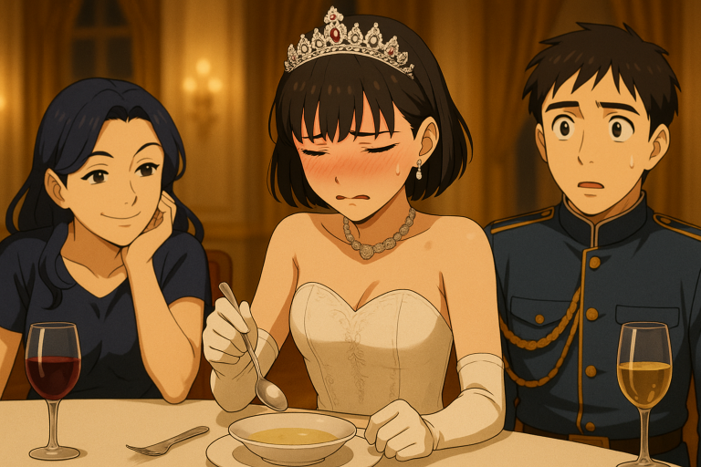 そう言い放つと、言葉づかいは元の荒っぽいかなめに戻ったが、ナプキンを膝にかける所作やスープの掬い方は、まだ優雅な『高貴な貴族の姫君』のままだった。