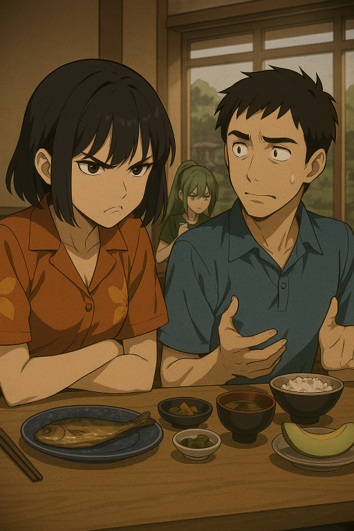 助けを求めるようにカウラを見たが、メロンを食べることに集中しているカウラにその思いは届かなかった。誠は空気が自分に不利と考えて鯵の干物を口に突っ込んで味噌汁で流し込んだ。