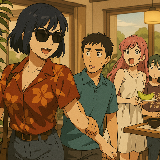 観葉植物越しにレストランらしい部屋が目に入ってきた。かなめはボーイに軽く手を上げてそのまま誠を引き連れて、日本庭園が広がる窓際のテーブルに向かった。かなめはそんな砕けた雰囲気の場に似合いのアロハシャツの胸をはだけてそこにサングラスを掛けたまま誠を引き連れて現れた。