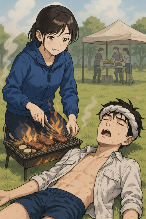 バーベキュー場の『特殊な部隊』の鉄の網の上にはまだ生の肉の塊や野菜が並べられていた。空腹に耐えながら誠はがっかりした様子でつぶやいた。