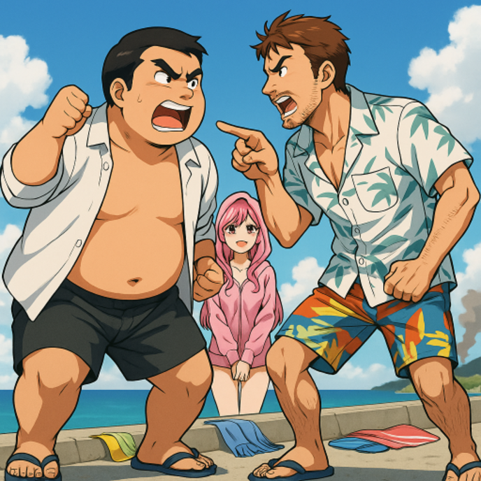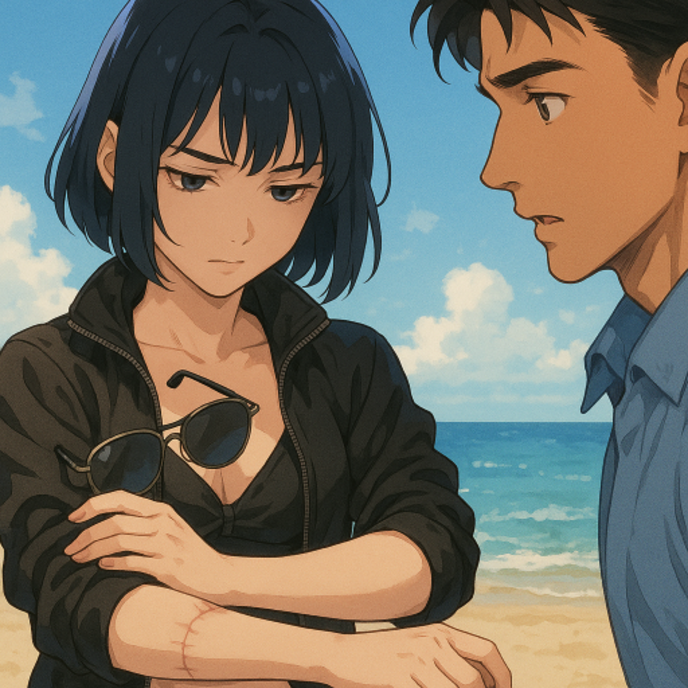 かなめは半身を起こしタバコをくわえながら、海水浴客の群がる海辺を眺めていた。