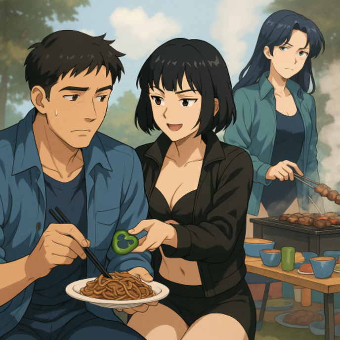 アメリアが当てつけのように山盛りの肉を持ってきた。誠はさっと目配りをする。その様子をかなめが当然のようににらみつけている。カウラは寒々とした視線を投げてくる。
