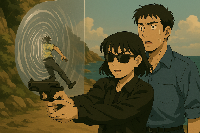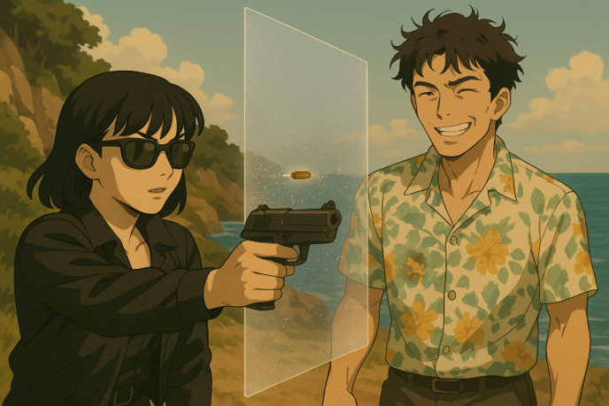 かなめは今度は頭と右足、そして左肩に向けてアロハの男の弱点を探すかのように正確にそれぞれ弾丸を撃ち込んだ。再び弾丸は誠にも見覚えのある銀色の干渉空間に吸い込まれて消えた。