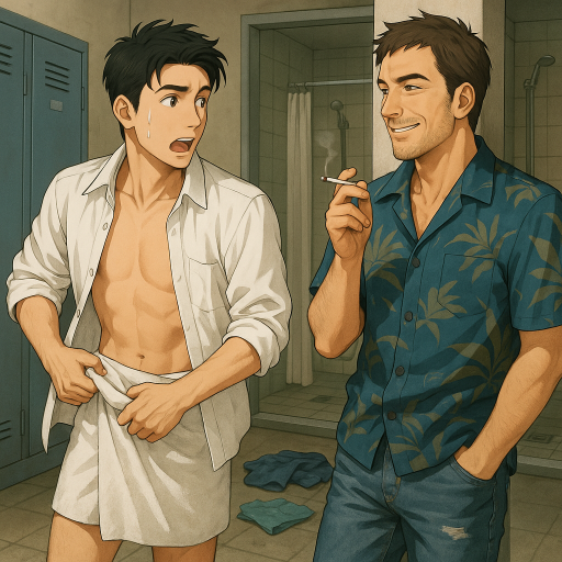 誠のむき出しの局部を見てにんまりと笑いながら島田は入り口の柱に寄りかかっている。誠はすばやくズボンを履いてシャツにそでを通した。