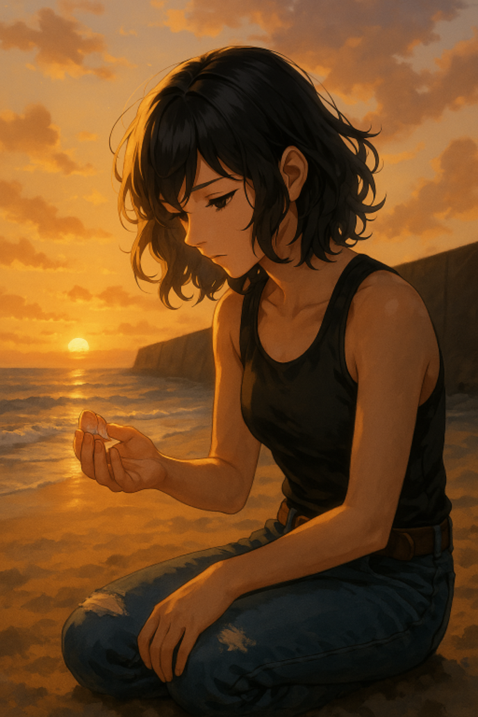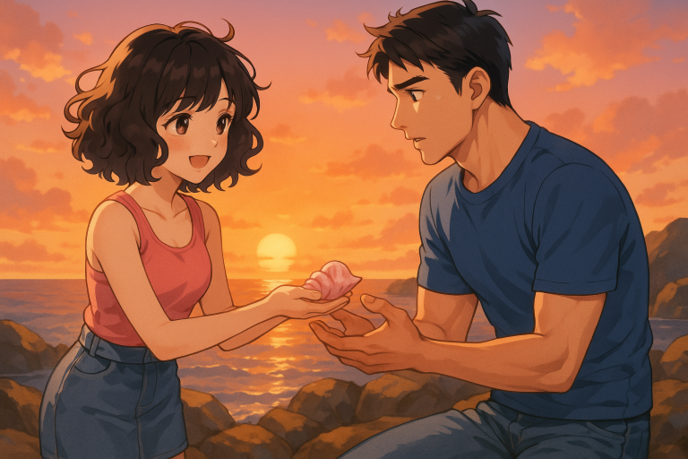 ひよこはそっと、貝殻を両手で包むように差し出した。朱に染まり始めた夕陽が、その表面を淡く照らす。