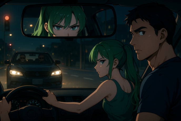 カウラは急にウィンカーを出し、すばやくハンドルを切る。後ろのセダンは振り切られまいと、タイヤで悲鳴を上げながらそれに続く。誠の胸が高鳴る。『スカイラインGTR』の速度は住宅地のそれとは思えない。視界の端に、振り返りきれず焦るセダンのライトがちらついた。