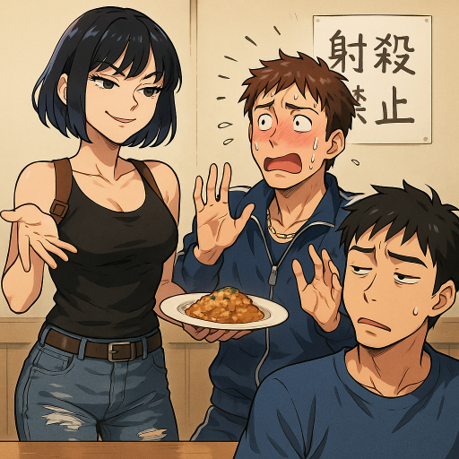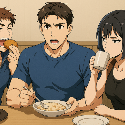 「神前、余計なお世話だよ。俺等、技術屋の仕事は時間との戦いだからな。いついかなる時も機体の状況に応じて技術を生かす必要があるから食うのも早くなる訳だ。神前もパイロットだろ?パイロットこそ刻々と変わる戦況に応じて時間と戦う仕事だ。オメエも早食いになれ。健康に悪い?そんなの戦死したら健康もくそもねえじゃねえか!やる気になればテメエでも出来ると思うぞ」
