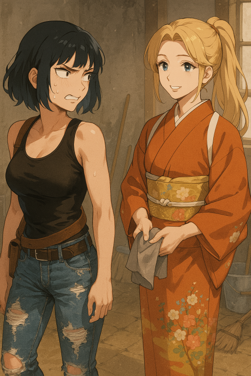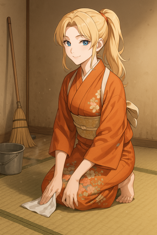 かなめは二本目のタバコに火をつけて、茜が畳を拭くのを眺めている。