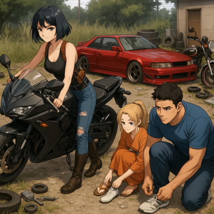 そのバイクのエンジンが2つも雨ざらしにされて置いてある。盗もうとする人間が現れないのは、その周りに島田が仕掛けた銀行並みのセキュリティーシステムのおかげ以外の何者でもない。エタノールエンジンの大型バイクを愛用しているかなめが、それを見て呆れたように肩をすくめた。