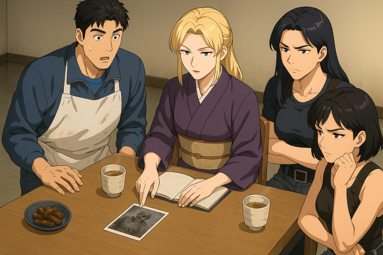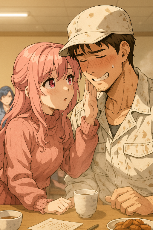誠は工具を置き、顔を上げて茜を見た。寮の食堂には、湯気の立つ急須と湯呑み、かりんとうの皿が雑に並べられている。安っぽい蛍光灯の白い光が、どこか緊張感の漂う空気を照らしていた。