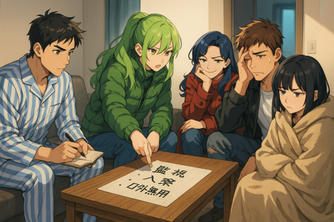 部屋の空気が一瞬だけ和らいだが、かなめの表情は依然として引きつったままだった。その様子にはこれまで寮の『女王様』として君臨し、寮長の島田を尻に敷いて好き勝手してきたかなめの面影はどこにもなかった。