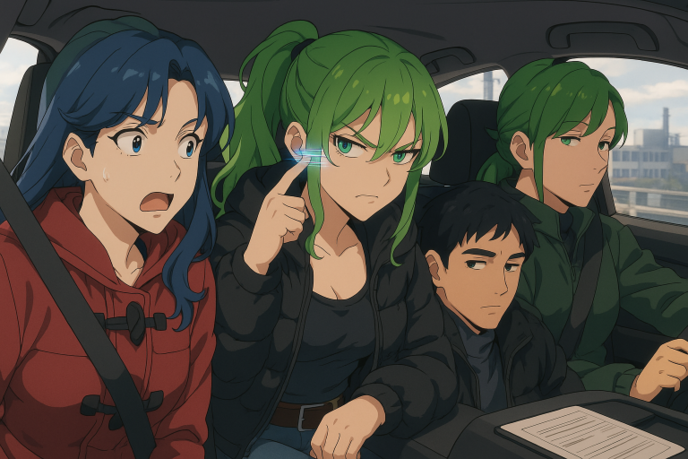 助手席に乗り込んだアメリアの声で車が走り出す。狭い後部座席。かなめが密着してくるのを何とかごまかそうとするが、目の前のアメリアは時々痛い視線を送って来た。後部座席に押し込まれた誠は、かなめの肘が自分の肋骨を突くのを必死に避けながら体を縮めた。