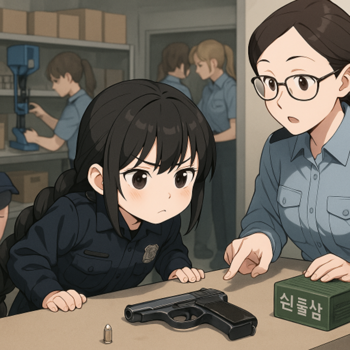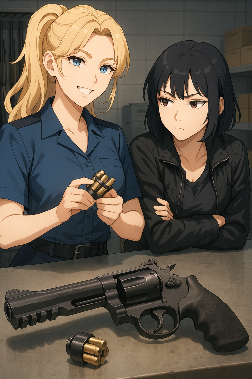 事務的な女性下士官の言葉に反応して茜が踏み出す。その目の前に女性下士官は大型のリボルバーS&WM327を差し出す。